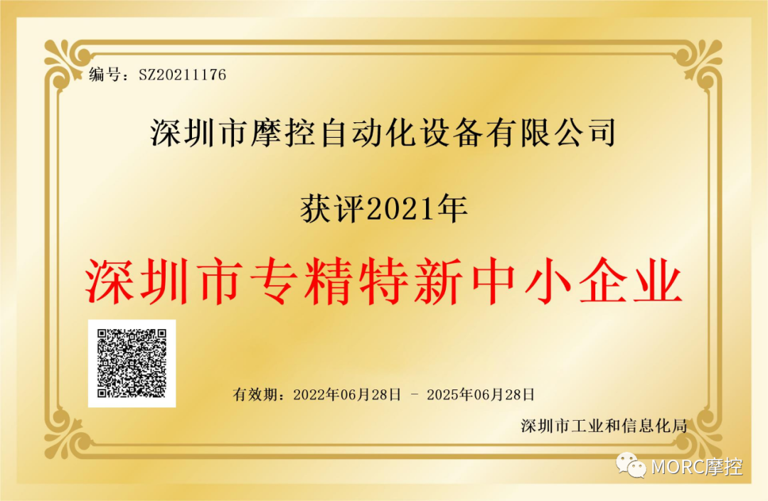 秋天是個豐收的季節,經過漫長的等待,2022年6月,深圳市工業和信息化局公布了首批全市“專精特新”企業名單,深圳市摩控自動化設備有限公司喜獲“專精特新”企業榮譽稱號;
